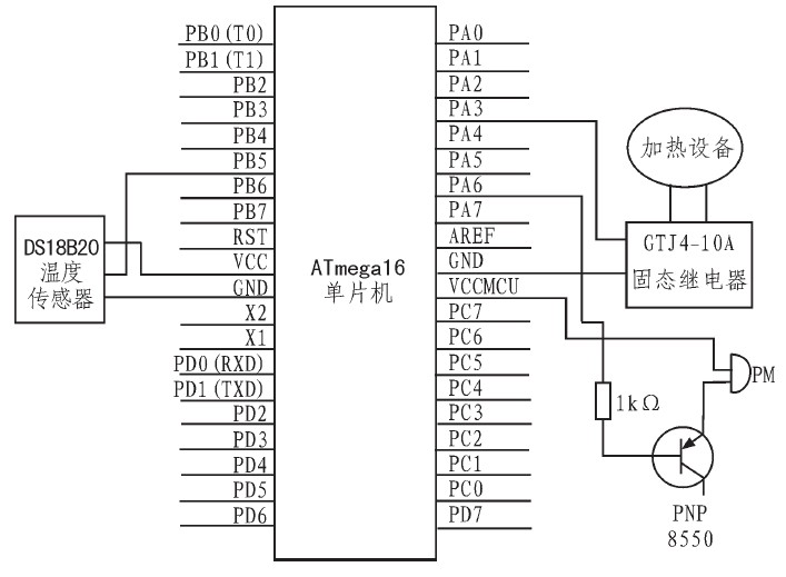 为实现实时准确的测量监控,采用串口传送数据并且在PC机上进行分析。由于单片机的控制方便、简单和灵活等优点,采用了高性能avr单片机来控制GTJ4-10A固态继电器,最总实现温度的控制。从而最总在PC机上绘制温度曲线并保存数据和分析温度的数据。