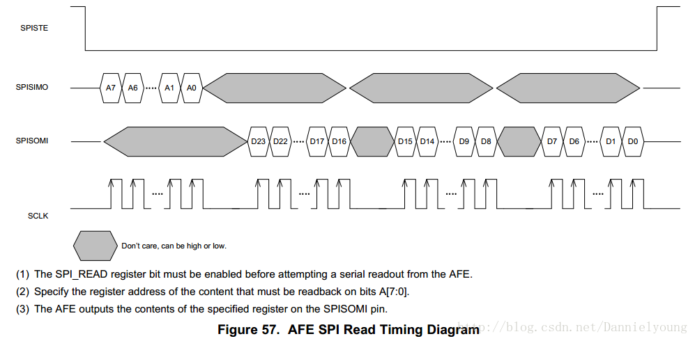 以下是AFE4400的SPI读写时序图: