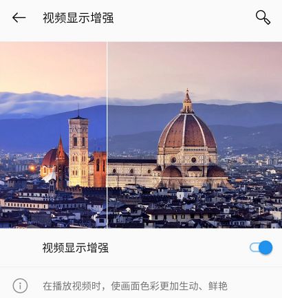同时,一加 7 Pro 还有一个视频显示增强的功能,可以提升视频画面的锐度和对比度,让视频看起来更鲜艳生动。