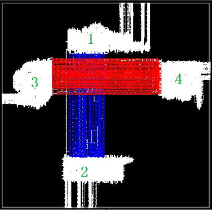 在该FPGA设计中,我们将输入输出管脚放在的FPGA上下左右四个方向上。上面管脚进来的数据经过逻辑1进行解密然后通过蓝色的走线送到逻辑2加密以后从下面的管脚送出。左边管脚进来的数据经过逻辑3进行解密然后通过红色的走线送到逻辑4加密以后从右边的管脚送出。如图2 所示。