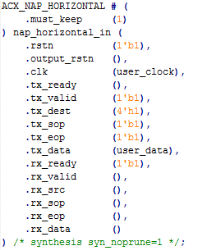 在NoC的每个交叉点上都有两个网络接入点(NAP),用户只要简单地通过例化NAP的原语或者宏定义就可以将自己的逻辑接入到NoC并进行互连。