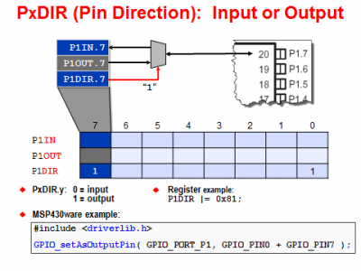 P1DIR &=~ BIT0; // Set P1DIR