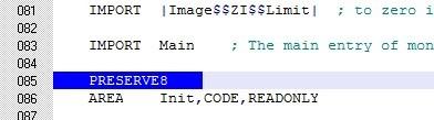 原因分析:uVision4的每个汇编指令是以8字节对齐的,所以每个汇编文件的首个段要表面是用8字节对齐的。