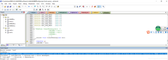 出现 .led.axf: Error: L6238E: 2440init.o(Init) contains invalid call from '~PRES8 (The user did not require code to preserve 8-byte aligment of 8-byte data objects)' function to 'REQ8 (Code was permitted to depend on the 8-byte aligment of 8-byte data items)' function Main.