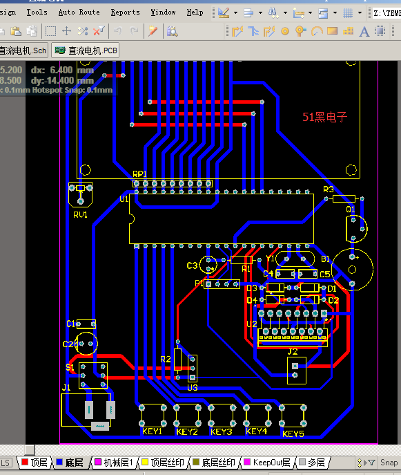 Altium Designer画的PWM直流电机调速原理图和PCB图如下: