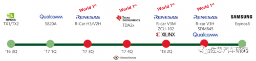 瑞萨 V3H 已经慢慢建立了自己的生态系统。在初创公司领域有韩国的 Stradvision、以色列 Cortica 和加拿大的 Leddar tech 合作伙伴。Stradvision 是韩国现代和 LG 投资的初创企业,早在瑞萨开发 V2H 时已经和瑞萨合作,顺便提一下,日产号称 L3 的用于天籁(北美型号是 Skyline)的 ProPILOT 2.0 就使用了瑞萨的 RH 850 和 V2H,当然主芯片还是 Mobileye 的 EyeQ4。系统由日立提供。