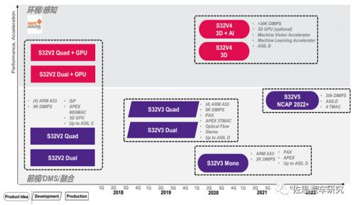 NXP 早在 2016 年就推出 S32V234,不过其性能比较弱,当时也未为深度学习考虑太多。仅仅有两个 APEX,只有 80GMAC,也就是大约 0.08TOPS 的算力。并且为了降低价格,NXP 还有一个更低的 S32V232。S32V234 目标是取得 ASIL C 级认证。S32V234 用在一汽森雅 R9 上,系统由东软睿驰提供,但是销量不佳,2019 年 1-12 月销量仅为 3307 辆。至于 S32V3 则与瑞萨的 V3H 差不多,但估计要到 2021 年或 2023 年量产。