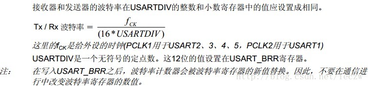 USART波特率的设置是整个配置中比较关键的,stm32厂商已经给了我们一个公式: