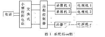 该系统由电话机、小型程控机、远程控制器和数台录像机、电视机组成,该系统既可以通过小型程控机构成一个局域的小系统,也可以利用电信网构成一个跨省市的远距离遥控系统。在该系统中,远程控制器的设计与制造是该系统的核心与关键。