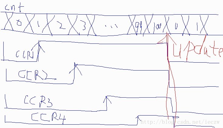 那么update信号产生后0.1ms产生CCR1的中断信号,0.5ms后产生CCR2的中断信号,0.6ms后产生CCR3的中断信号,这些中断标志位是: