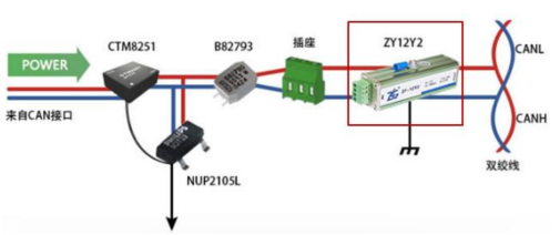 外接专用的信号保护器消除干扰,如 ZF-12Y2 消耗干扰强度或者是CANbridge+ 网桥做隔离。
