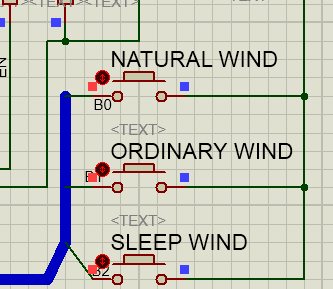 LED指示灯模块: 共四个绿色LED指示灯,分别指示风扇电机运行状态,自然风(natural wild),常风(ordinary wind),睡眠风(sleep wind),无风(no wind)