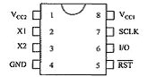 若采用外部振荡信号时。32768Hz的信号从 X1脚输入.x2脚悬空。 RST:片选端,高电平有效。RST端接通控制逻辑,当其为‘0”时 ,IO引脚变为高阻截状态,所有的数据传送中止,当其为‘1’时,允许数据传送。RST由‘0’至‘1’时。SCIK必须为“0”。