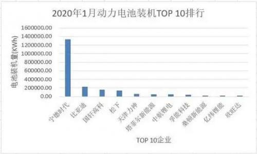 2020 年 1 月动力电池装机量前 10 名 图源:盖世汽车