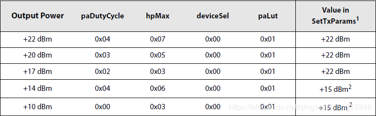 其具有4个参数,第3-4参数为固定值,不需理会。1和2的具体取值,可参考下表,最后1列表示SetTxParam函数中设定的数值。