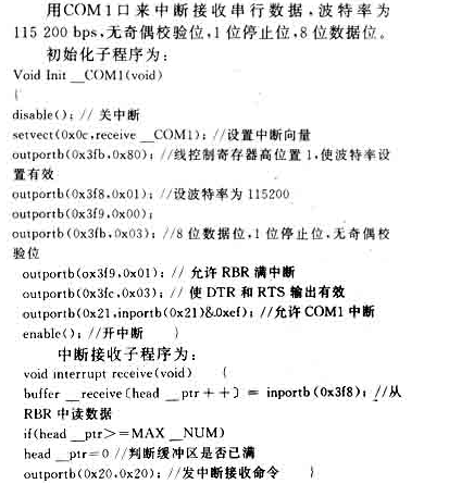 上位机通信程序由两部分组成:初始化子程序,中断数据接收子程序。