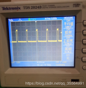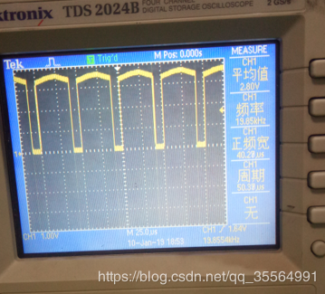 理论上周期为 f=FOSC/4/PS/(PR2+1)=16M/4/1/(199+1)=20K