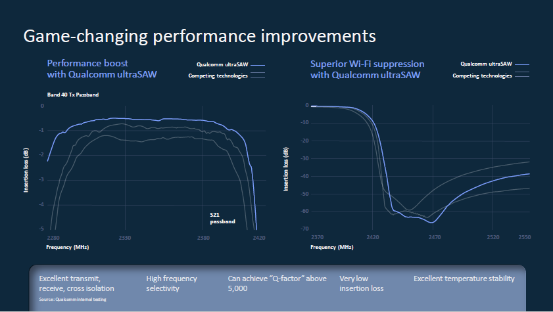 高通ultraSAW技术与友商的滤波器技术的性能对比