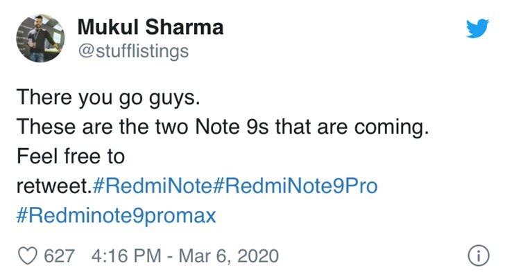 据知名爆料博主Mukul Sharma称,小米将于3月12日在印度发布Redmi Note 9 Pro和Redmi Note 9 Pro Max,值得注意的是Redmi Note 9并不会在此次发布会上亮相。Redmi Note 9 Pro和Note 9 Pro Max将以Redmi Note 8系列继任机型的身份出现。
