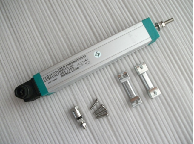 电阻式位移传感器的工作原理如下,根据欧姆定律:E = I R,其中E为电源电压值,R为滑轨电阻的总阻值。因为E,R是常数,所以电流值I也是常数。根据电阻分压器的原理:V = I r,其中r是滑块触点与滑轨一端之间的阻值。根据V = I r,其中I是常数,V和r是线性相关的。如果把滑块触头固定在测量杆上,则测量杆的位移S也与分压V或电阻r呈线性关系,即V = I r或者S = K'r,其中K 和K'是要确定的转换因子。从E = I R,V = I r可以看出,电阻式位移传感器的测量范围可以非常大,其位移S与电压V或电阻r之间的关系均呈线性关系。