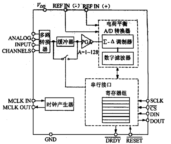 如果外部连接晶振、精密参考源和去耦电容,可以进行连续AD转换。它使用低成本、高分辨率的转换技术来实现16位无错误数据输出。这符合对分辨率要求高,但对数字转换要求并不高的应用,如智能仪表产品和数字音频产品。以下对芯片的几个重要部分以及特性进行简要的说明。