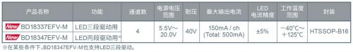 全球知名半导体制造商 ROHM(总部位于日本京都)面向两轮 / 四轮机动车中应用日益普及的 LED 尾灯(刹车灯、后尾灯)、雾灯、转向灯等,开发出内置 MOSFET 的 4 通道线性 LED 驱动器 IC“BD183x7EFV-M”(BD18337EFV-M / BD18347EFV-M)。