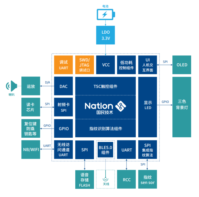 -提供“国民技术MCU+指纹算法+TSC触控+蓝牙”单芯片方案