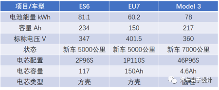 表 2 3 款车的电池配置
