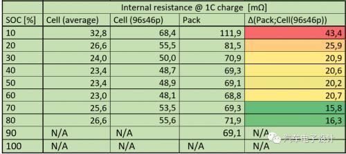 表 3 特斯拉的 1C 充电内阻