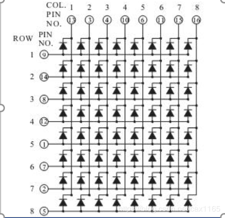 点阵内部led连接方式如下图:
