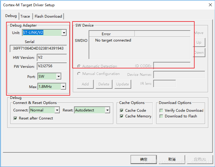 keil中显示没有设备连接