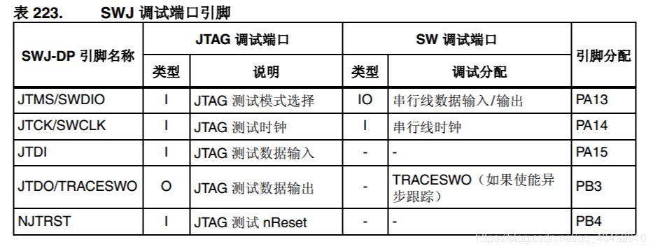在各种网上查找之后,发现有网友说到下载口的引脚是PA13和PA14,突然想起我的当前程序,为了方便,随便用了两个引脚,就是PA13和PA14,于是赶紧查看芯片手册,并且修改程序,将PA13和PA14引脚换成了别的引脚,如下图: