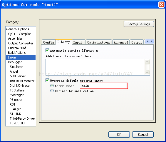 2)链接器不需要知道程序从哪里开始执行,只需要强制低把启动代码加入,就可以实现从复位异常-》系统初始化-》main完成。但是,这样的链接器动作太过死板,如果用户需要另外的启动方式,则使用此链接器不能达到目标。