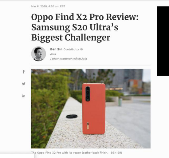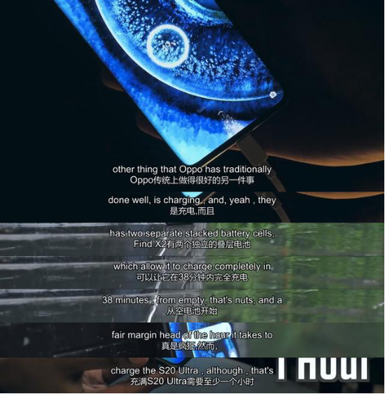 除屏幕、影像系统外,外媒还特别强调了OPPO的快充技术。Find X2系列支持65W SuperVOOC闪充2.0,采用串联双电芯的设计方案,能实现更高的充电效率。据OPPO官方数据显示,Find X2两款产品充电从0%~100%,仅耗时38分钟。要知道,三星S20 UItra支持45W快充,充满还至少需要一个小时。因此在快充技术上,还是Find X2技高一筹。