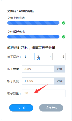 4、点击“上传pcb文件”,上传打包的压缩文件。
