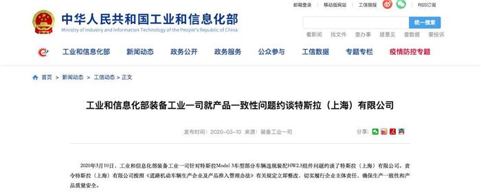 随着时间的推移,这件事情在网络上迅速发酵,很多的特斯拉车主都在指责马斯克的“奸商嘴脸”,同时有买了进口Model3的车主表示他的车子也存在同样的被减配问题,而特斯拉也引起了网络上一片声讨。虽然3·15晚会因为疫情而延期,但是“减配门”事件还是引起了工信部(工业和信息化部)的关注。就在3月10日,工信部就部分Model3车型未能正常安装HW3.0违规减配安装了HW2.5组件问题约谈了特拉斯(上海)有限公司,随后责令特斯拉必须依照有关规定立即整改,必须切实保障消费者权益,确保产品质量和其一致性。