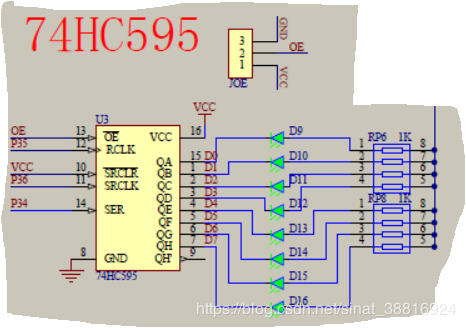 这图是丑的没法看了。但为了叙述清楚,目前也只能这样了。74HC595芯片详细的内容可以网上找,也可以直接评论区留言。