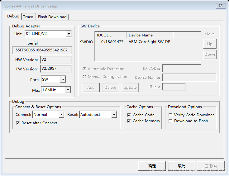 第一步:使用ST-Link下载器连接板子