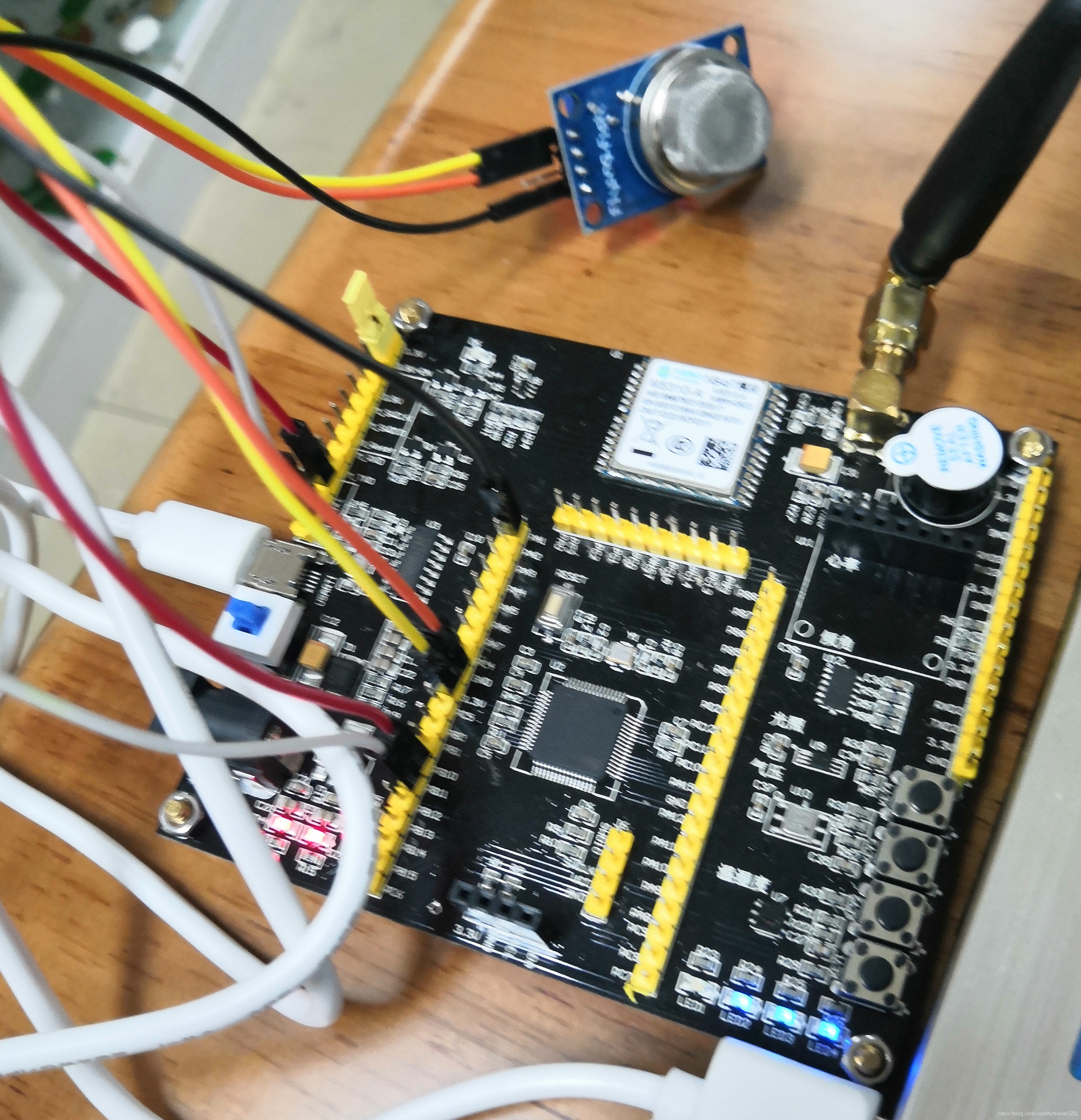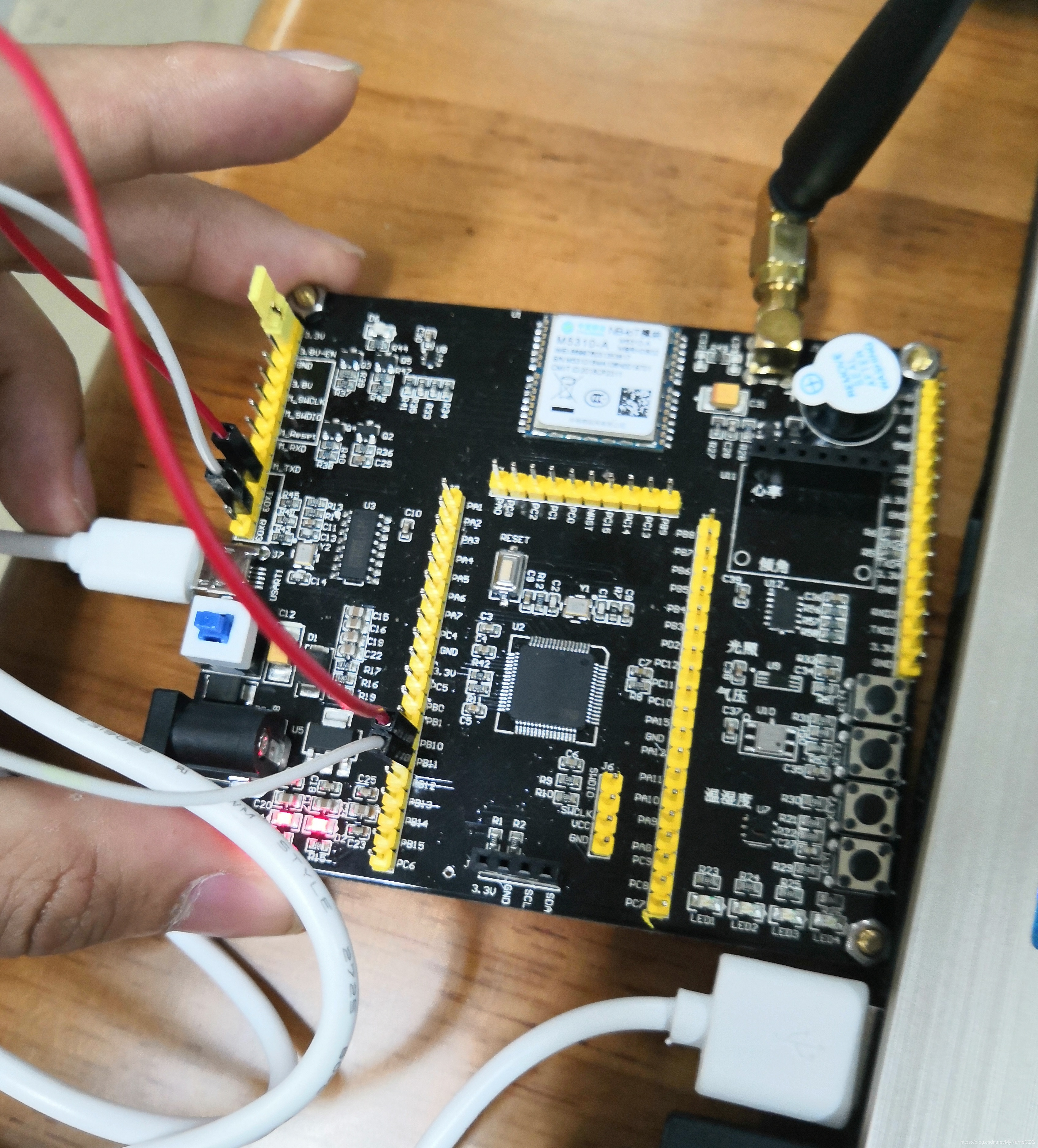 此程序下载后,单片机串口3收发口与NB模组串口收发口相连,天线安装好后接上电源,即可自动连接OneNet平台,同时也可以通过串口调试助手查看连接状况,等待一段时间LED3,LED4灯亮说明已经连接成功,查看云平台设备在线状况