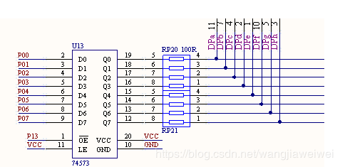 将GR、RE、DP引脚与单片机的IO相连,然后写程序控制IO口,就可以控制点阵的点亮形式。