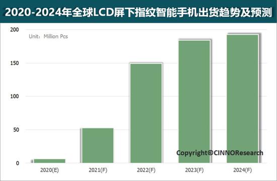 据CINNOResearch月度屏下指纹市场报告数据显示,2020年有望成为LCD屏下指纹量产上市的元年,乐观预测今年出货量有望超过600万台,并在2021年迅速上量至5,270万台,至2024年,LCD屏下指纹手机出货量有望成长至约1.9亿台。