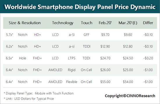 与此同时,受疫情影响,3月智能手机面板价格会出现下滑的情况。