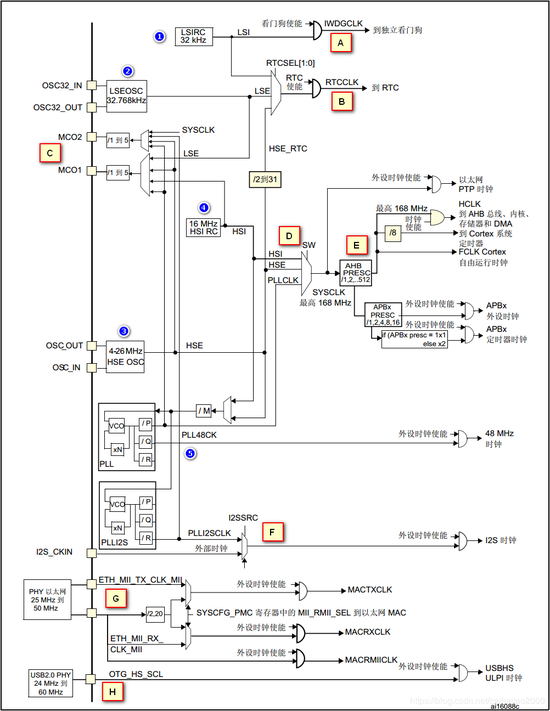 H.这里是指外部PHY提供的USB OTG HS(60MHZ)时钟。