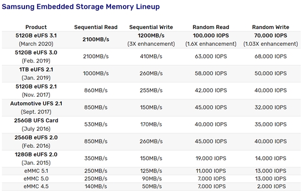 当然,这批新的eUFS 3.1闪存还有128GB和256GB容量。
