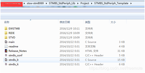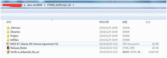 1、准备标准库函数文件,官方的标准库函数为stsw-stm8069,解压后如下图: