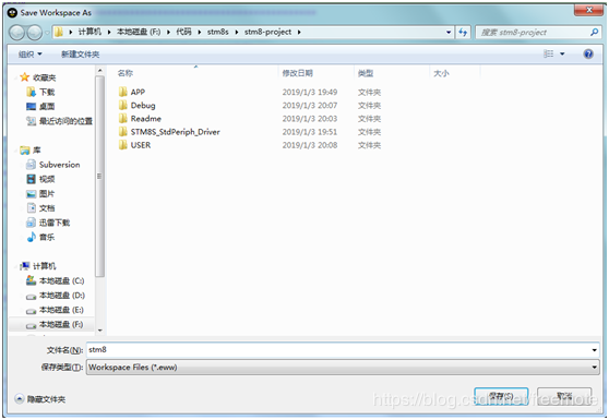 9、工程另存为stm8,保存在前面新建的stm8-project文件下: