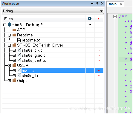 main.c、stm8s_conf.h、stm8s_it.c 、stm8s_it.h到USER目录。