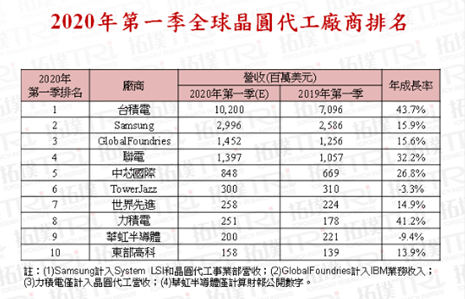 2020年03月20日 | 研调:Q1全球晶圆代工产值或年增3成,疫情影响将反应在Q2