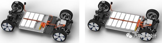 1)电池系统的扩展性:7 个模组作为最低的方案,12 个模组作为最高的方案,ID1 的 24/36kWh 是否采用目前的布置还不确定 这里有几个核心的问题,就是如下图所示的 7 模组方案,空间利用率并不高,原本计划最低的 8 个模组方案,由于需要降低 ID3 的售价又去掉一个,所以导致浪费了两个空模组的空间。对比目前国内采用 590 的方案,基本是在 10 个模组起步(容忍一定的低电压),因此这里存在大众配置电量欧洲容忍的电量要比中国更低。