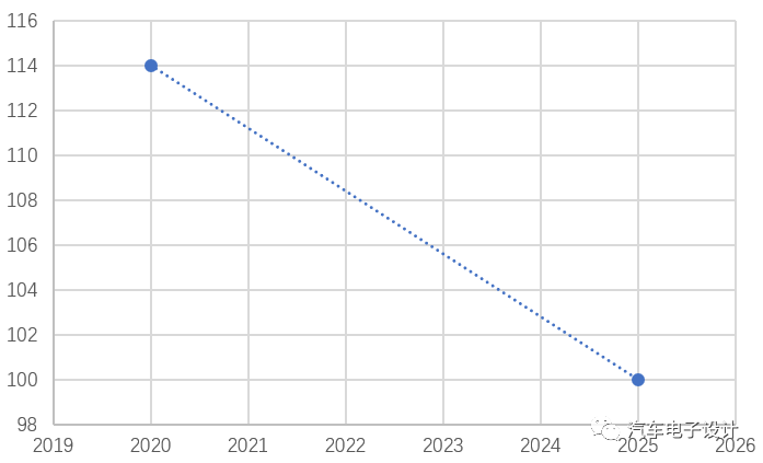 而在 2020 年 3 月份,在分析师会议上 大众子啊分析师会议上对于电芯的价格预估,是在 2025 年之前,把电芯成本控制在 100 美元 /kWh